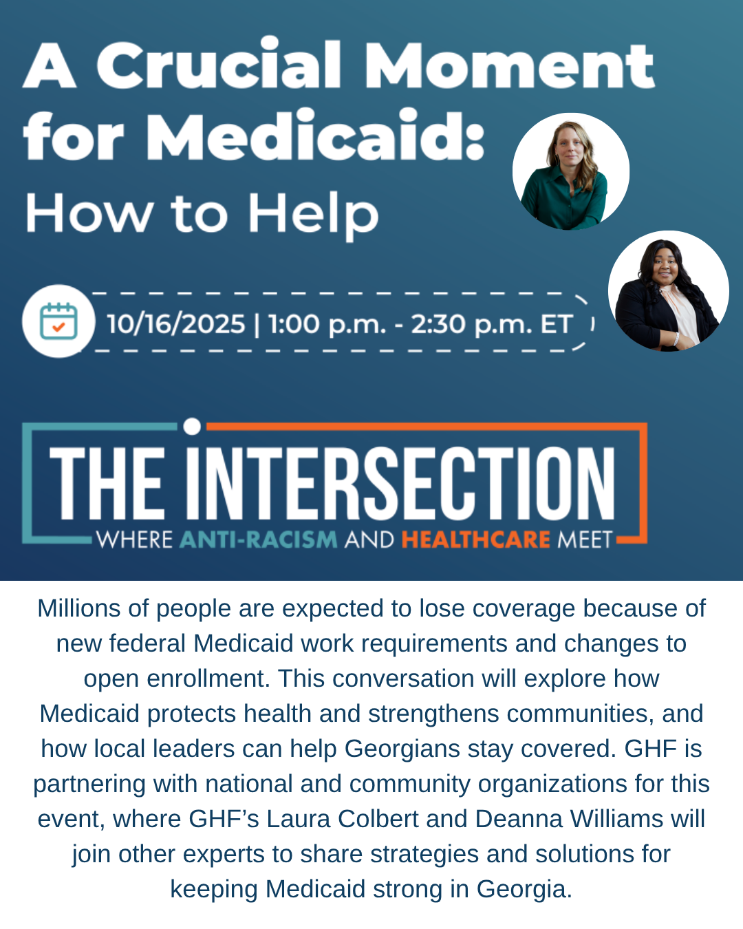 A Crucial Moment for Medicaid: How to Help Millions of Georgians could be at risk of losing health coverage. Join us for A Crucial Moment for Medicaid: How to Help on October 16, 2025 | 1–2:30 p.m. ET. This conversation will bring together experts, including GHF’s Laura Colbert and Deanna William...Read more